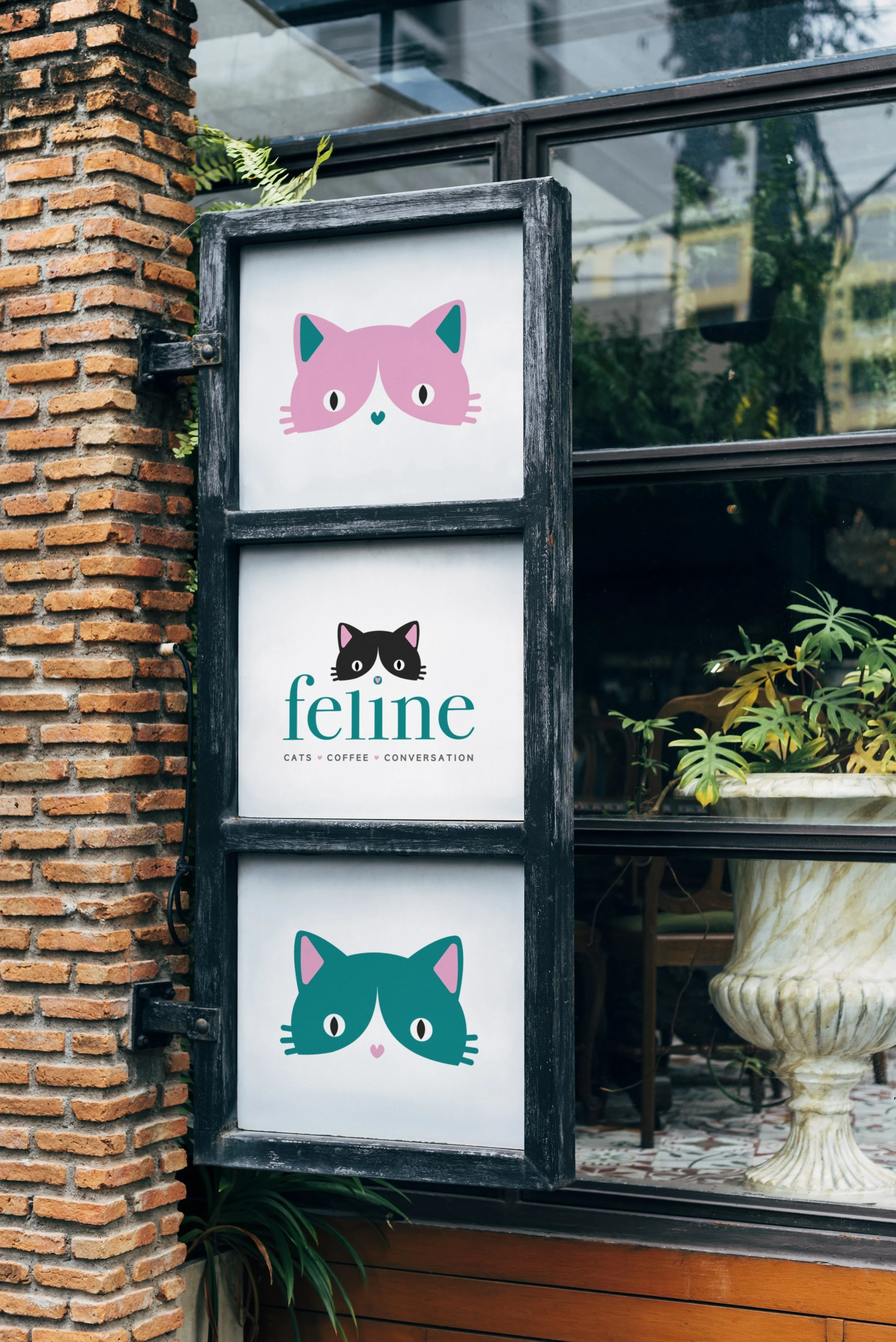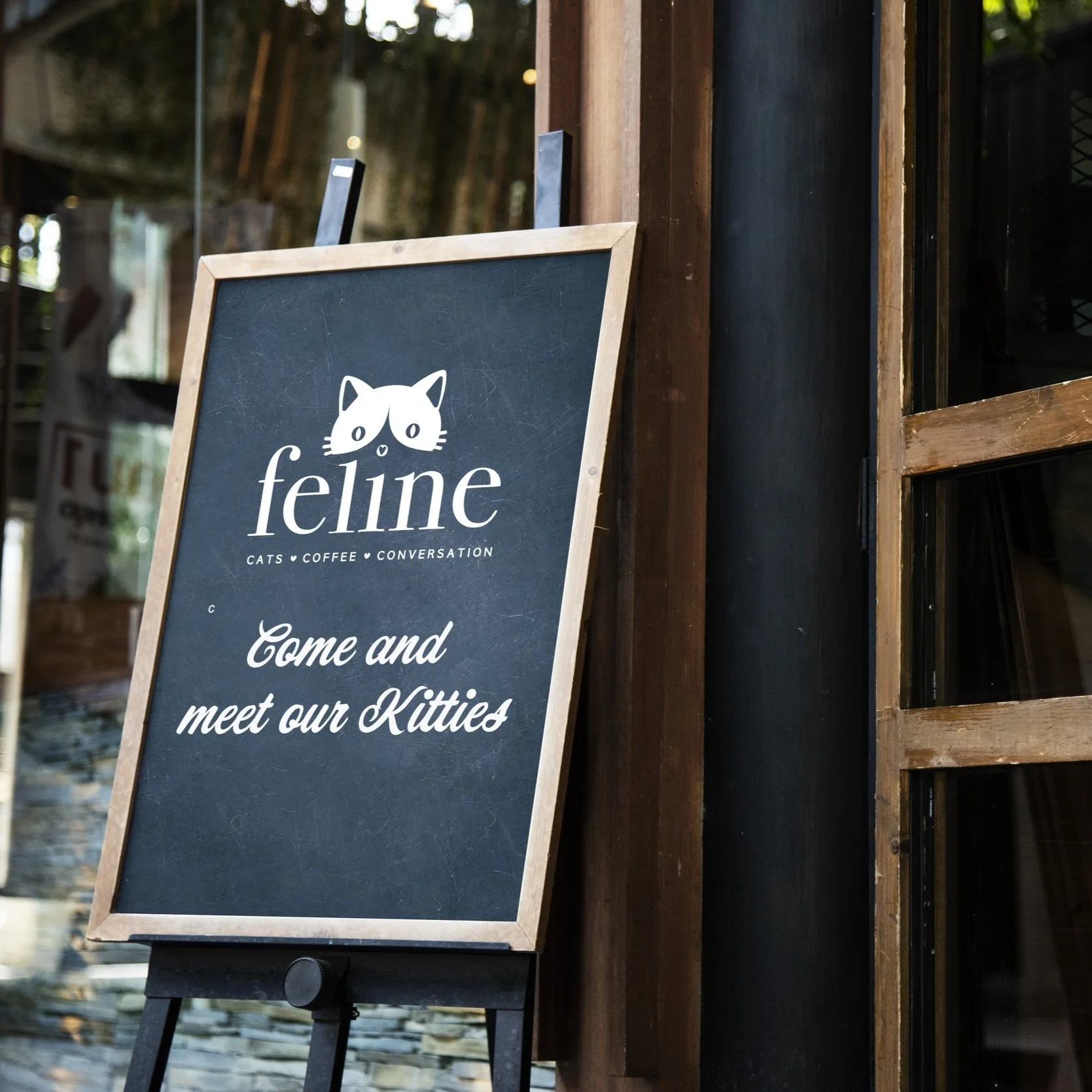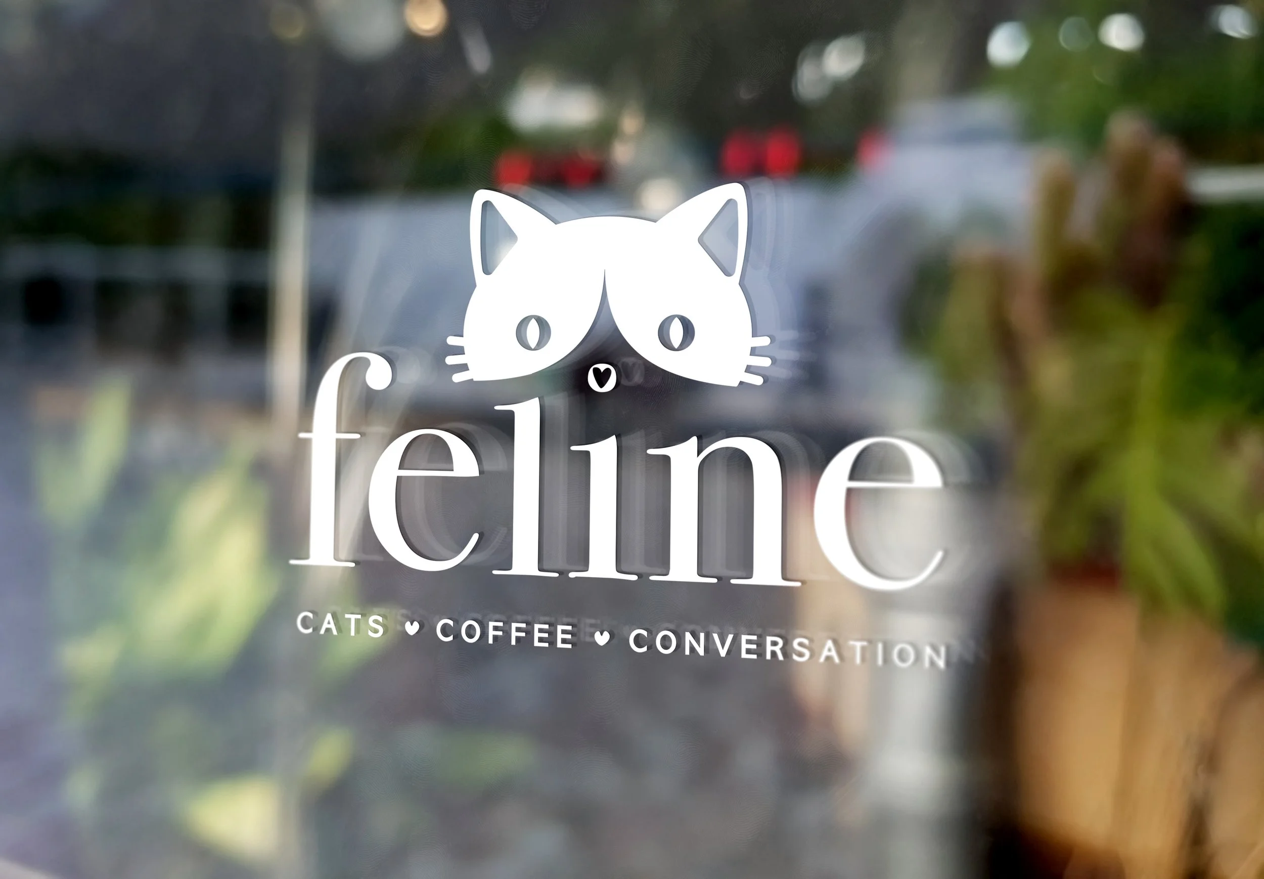Feline is a Urban cat cafe. A purrrrfect place to get a coffee and chill out with furry friends. The Brands target audience is Young professionals and students looking for a cozy, casual place to relax, study, or socialize.